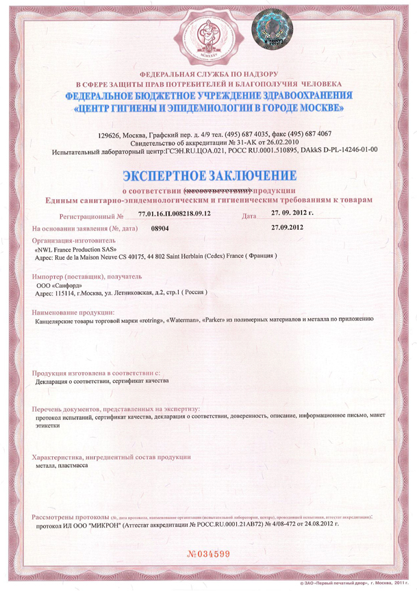 Сертификаты - Официальный дилер PARKER в Астрахани